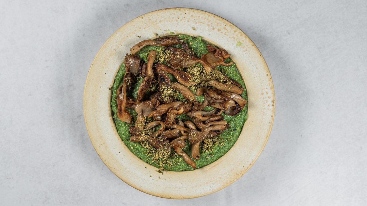 sa šumskim pečurkama, poširanim jajima i krema od belog luka