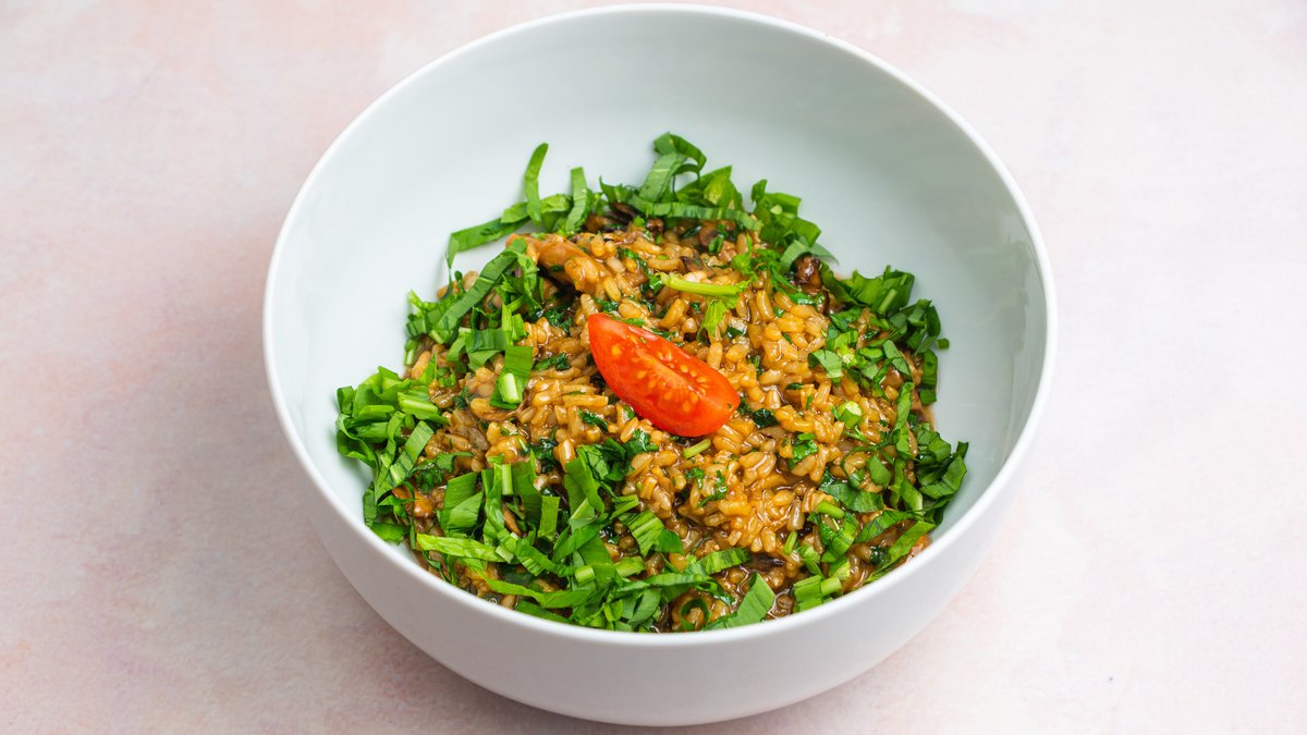 al dente arborio pirinač, bukovača, praziluk, krema od suncokreta, ulje od tartufa