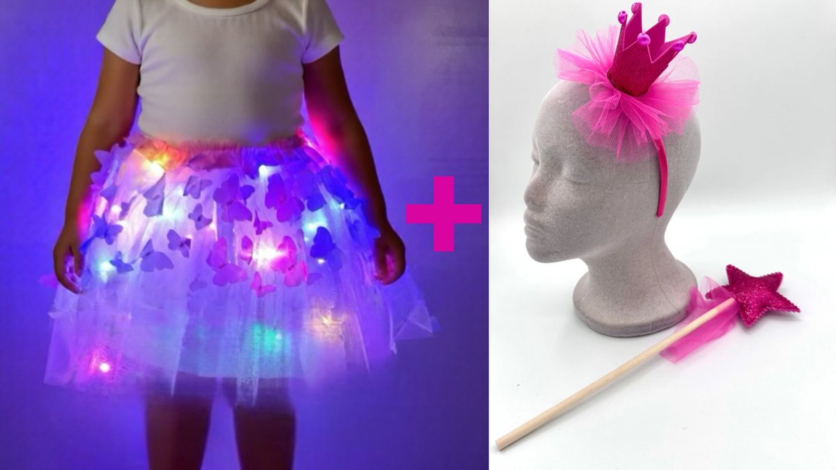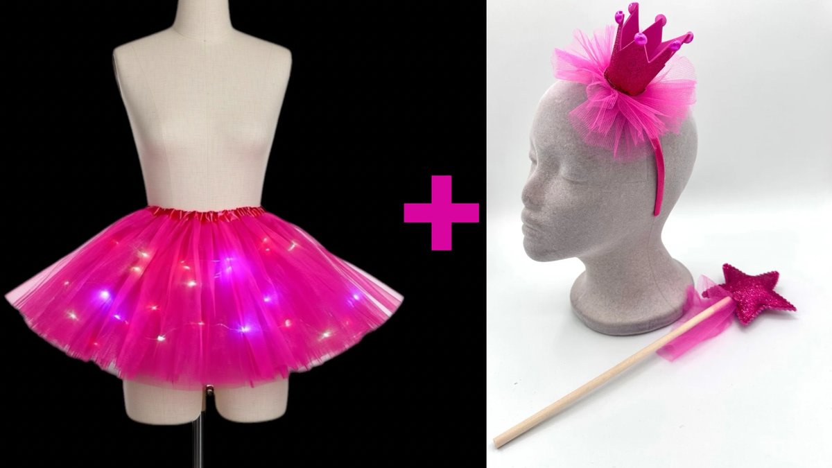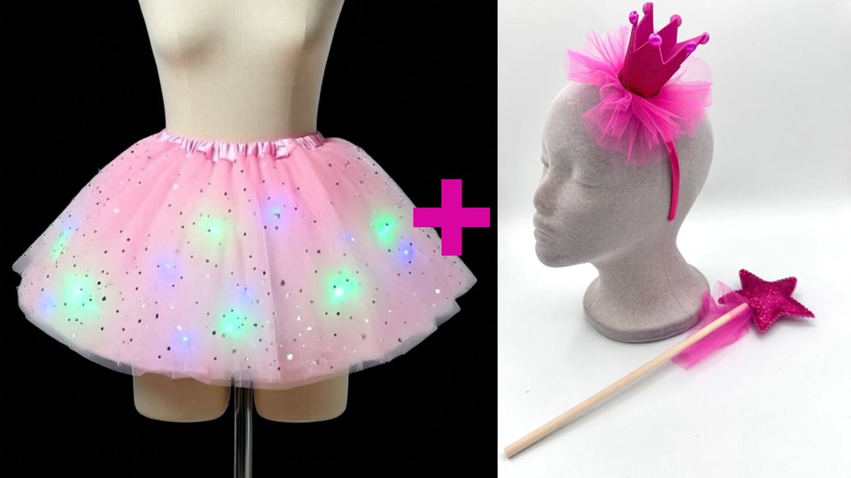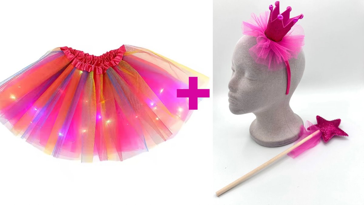 Novogodišnji paketić - svetleća suknjica, rajf kruna i čarobni štapić PINK