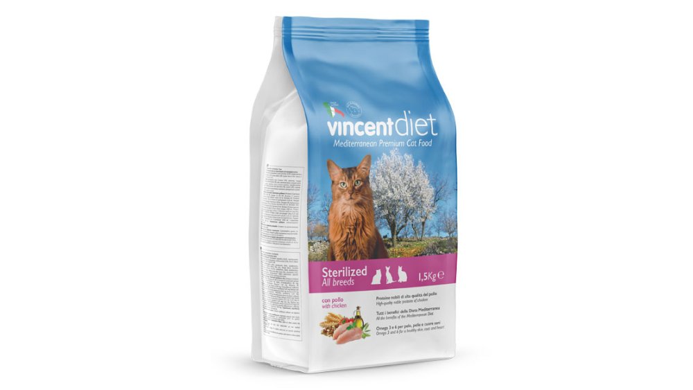 Vincent Diet Sterilized with Chicken 1.5kg – Savršen obrok za sterilisane mačke sa piletinom za zdravlje, sjajnu dlaku i idealnu telesnu težinu 🍗✨🐱
