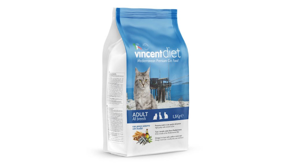 Vincent Diet Adult with Bluefish 1,5 kg – Suva hrana za odrasle mačke sa plavom ribom za zdravlje, sjajnu dlaku i vitalnost 🍽️🐾