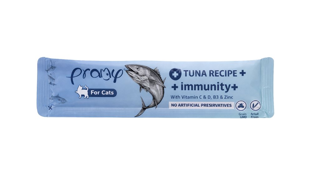 70,00 RSDPramy Immunity+ sosić poslastica za mačke Tuna Recipe 14g – multivitaminska podrška snažnom imunitetu 🐱💙✨