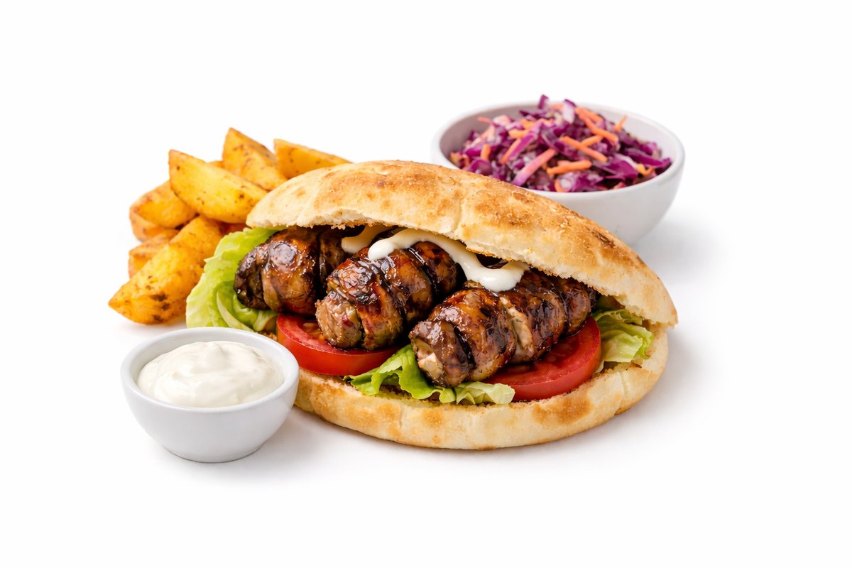 Rolovani pileći file 200g, svinjski ražnjić 200g, dimljena kobasica 200g, ćevapi 200g, uštipci 200g, batak 200g, pomfrit 500g, Coca Cola 1l, 4 somuna