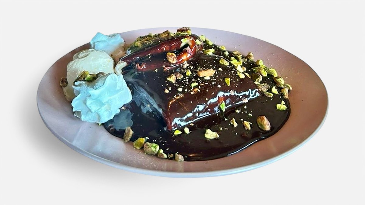 Pistac krem, kadaif, čokoladni preliv, pistaći sladoled