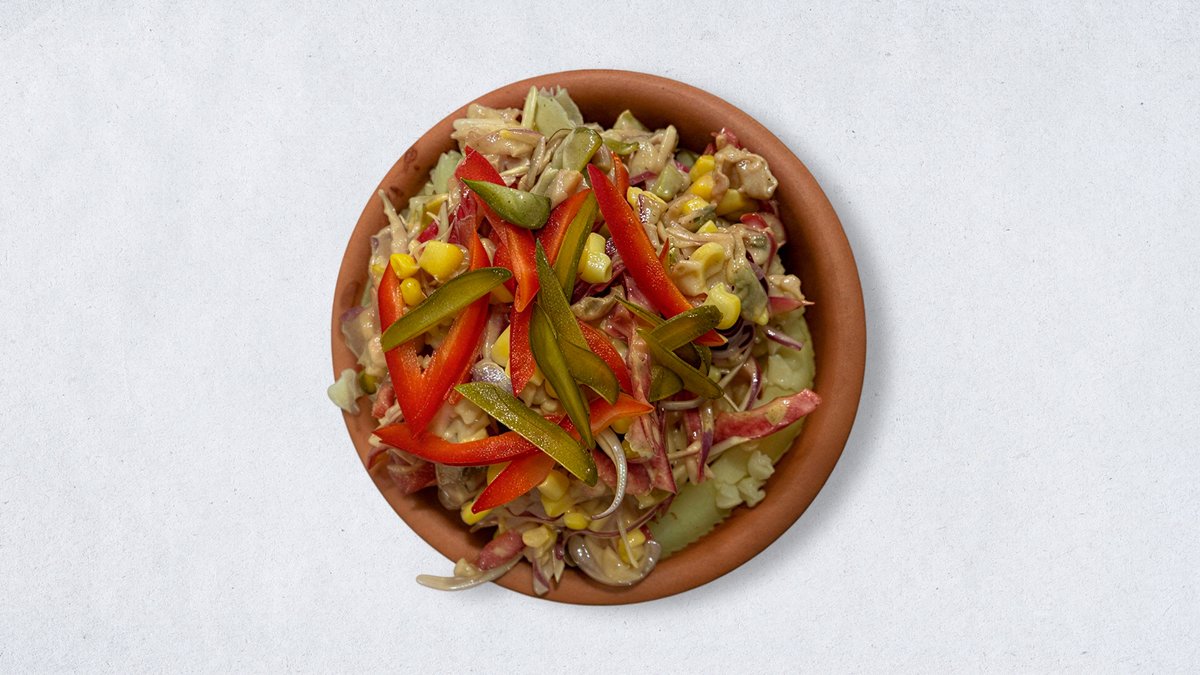 Tunjevina sa povrćem: paprika kukuruz kiseli krastavci crveni luk i limun
