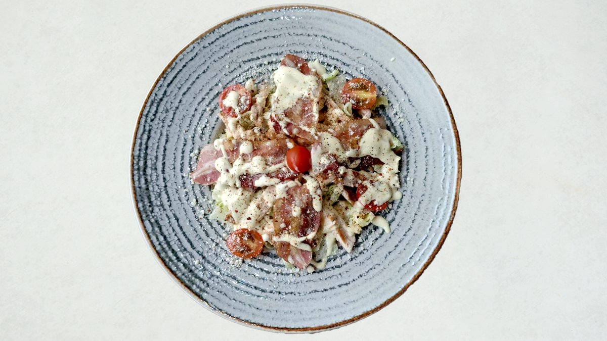 Piletina, pršuta, paradajz, krastavac,zelena salata, feta,masline, preliv