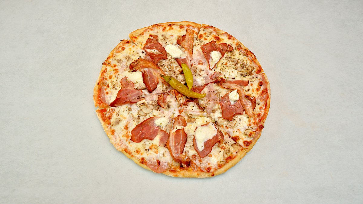 Pelat, kačkavalj, šunka, suvi vrat, slaninia, kajmak, feferone, šampinjoni, origano