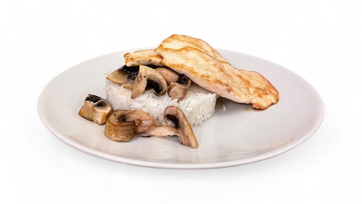 pileći file, pirinač, pečurke