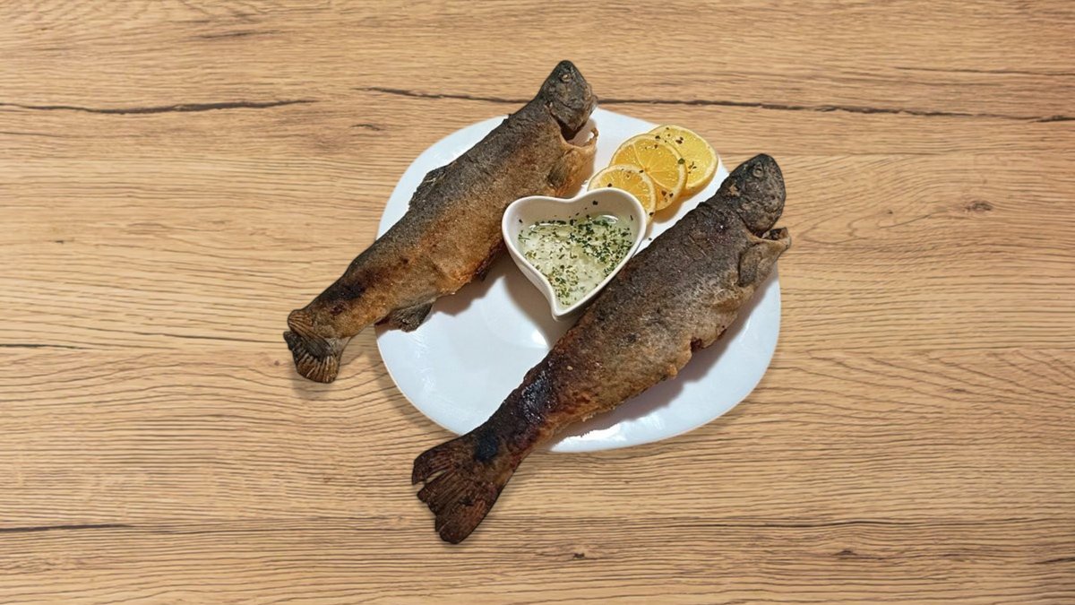 Grilovana pastrmka od 350 gr sa dodatkom od 100 gr hrskavog pomfrita. Savršen izbor za ljubitelje ribe!