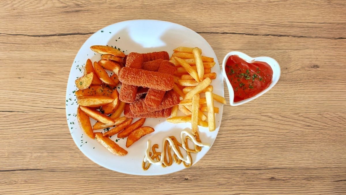Uživajte u ukusnim ribljim štapićima (200g) serviranim sa hrskavim pomfritom (100g). Idealno za ljubitelje ribe!