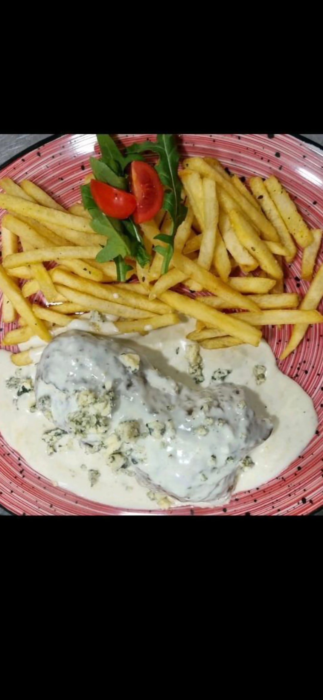 Svinjski file, neutralna pavlaka, gorgonzola, vrganj, pomfrit, soja sos
