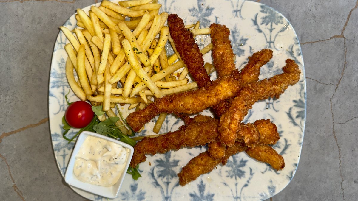 2 jaja, pohovani kačkavalj, pileci štapići u panko prezli, tartar sos