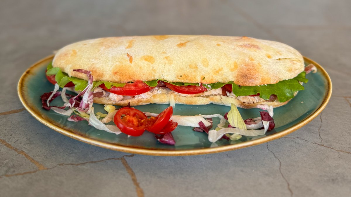 Pelat, paradajz, tunjevina, zelena salata, posni kačkavalj, masline