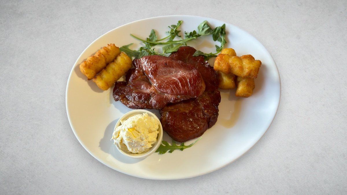 juneći biftek,mix povrća,kiseli krastavac,senf,belo vino,neutralna pavlaka,parmezan