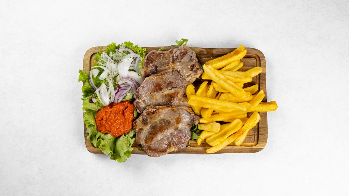 200g ćavap, 200g uštipak, 200g belo meso, 200g batak, 200g dimljena pečenica, 3 kom lepinja, kupus, luk