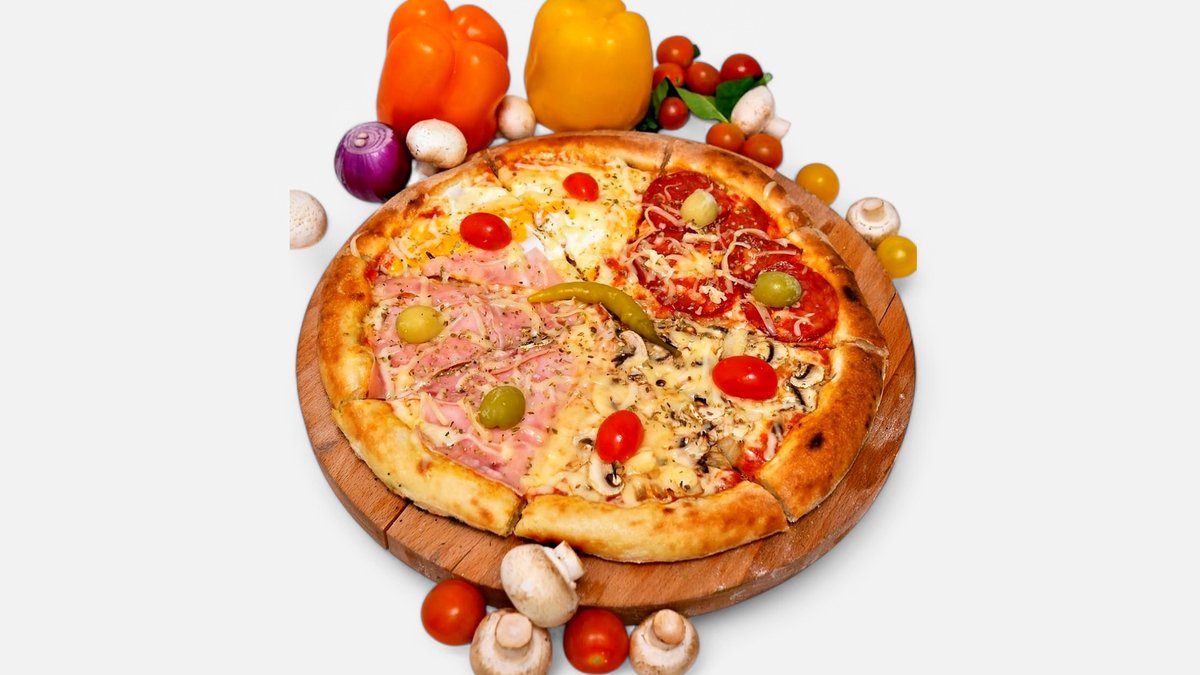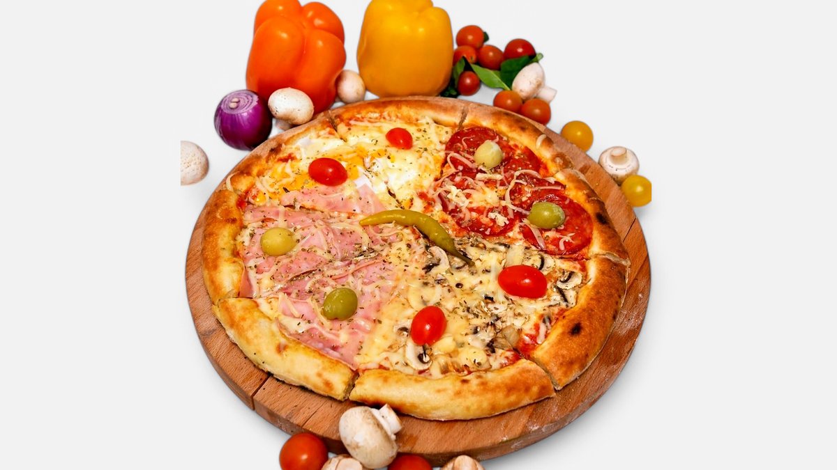 Kačkavalj, pelat, tuna, masline, crni luk, kukuruz, čeri