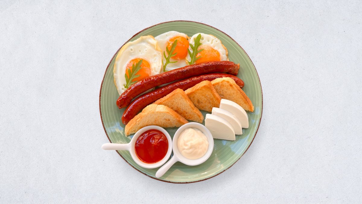 Kobasica, jaja, feta sir, tost hleb, majonez, kečap