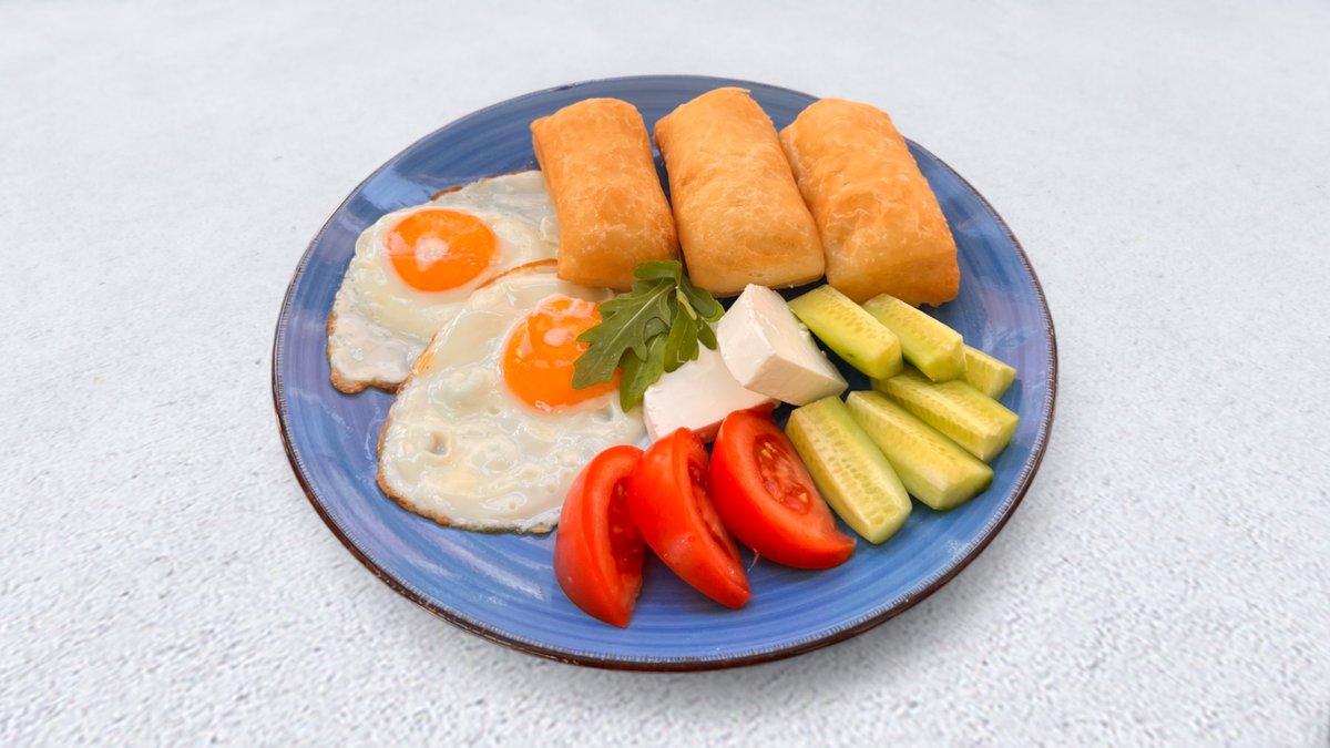 Uštipci, jaja, paradajz, krastavac, feta sir