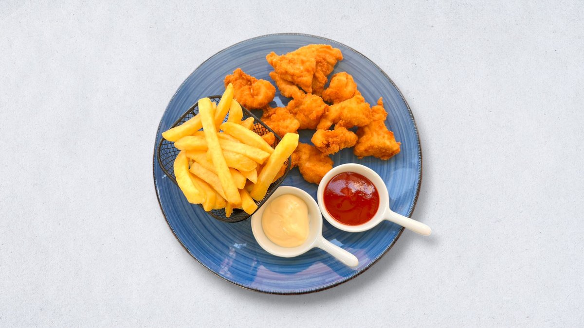 Pileći medaljoni, pomfrit 150g, kečap, majonez