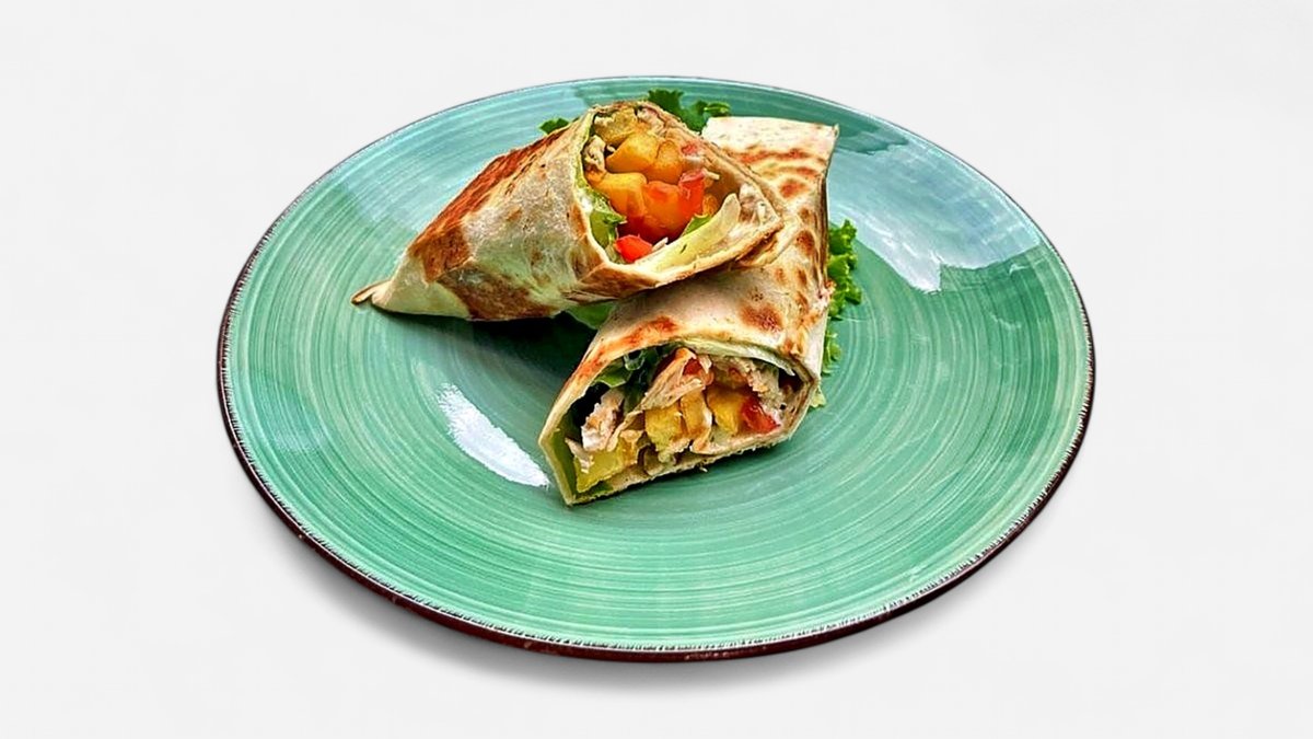 tortilja, piletina, pomfrit, iceberg, cezar dresing, paradajz