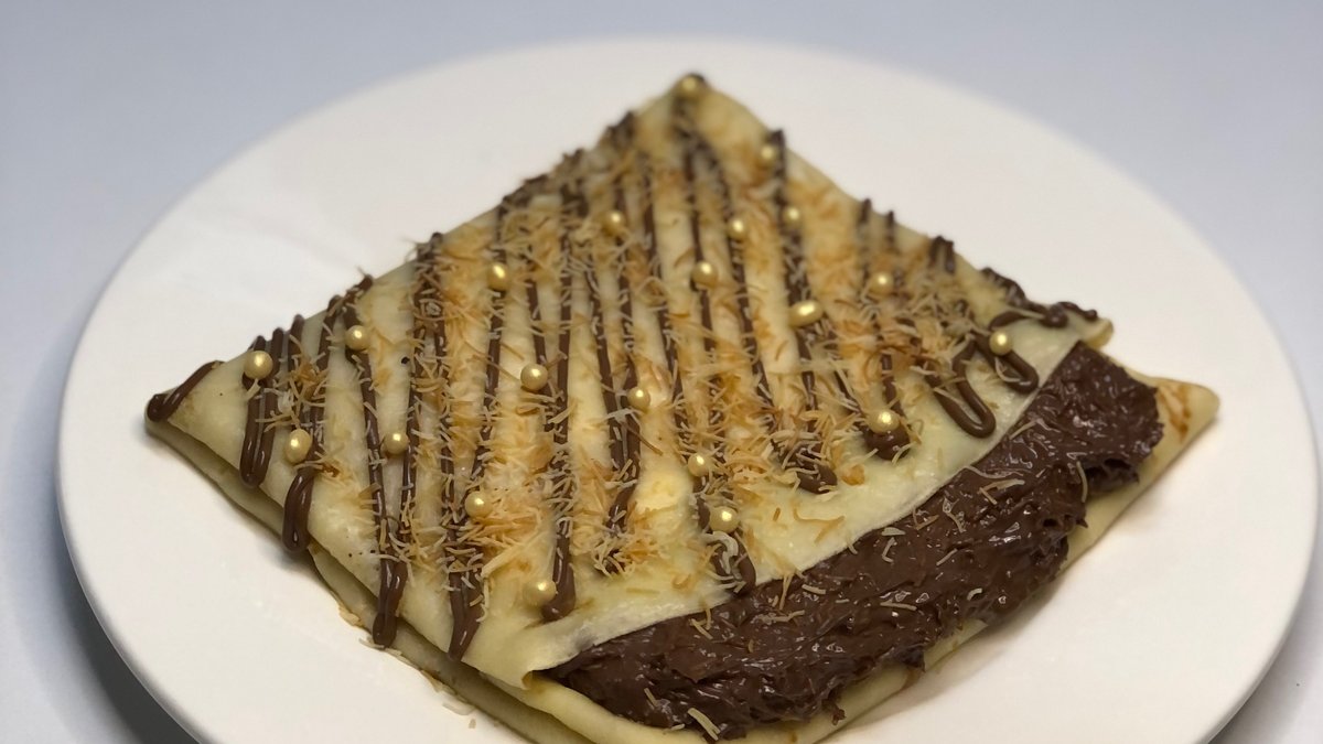 Dudai palačinka sa bogatim Nutella kremom i kadaifom. Savršena slatka poslastica za uživanje!