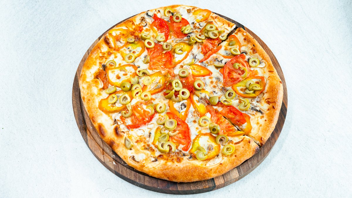 Tomato, biljni kačkavalj, tunjevina, šampinjoni, masline, šećerac