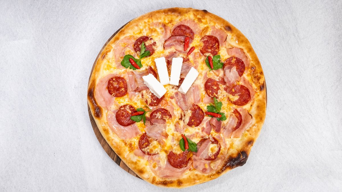 Tomato sos, šunka, kulen, kačkavalj, masline, papričice