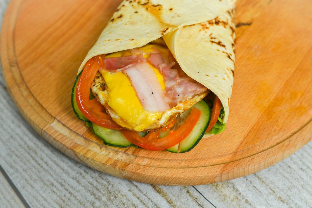 2 jaja sa sirom i slaninom u tortilji, prilozi