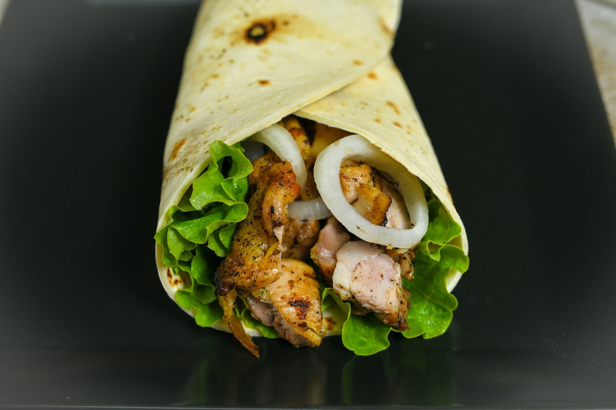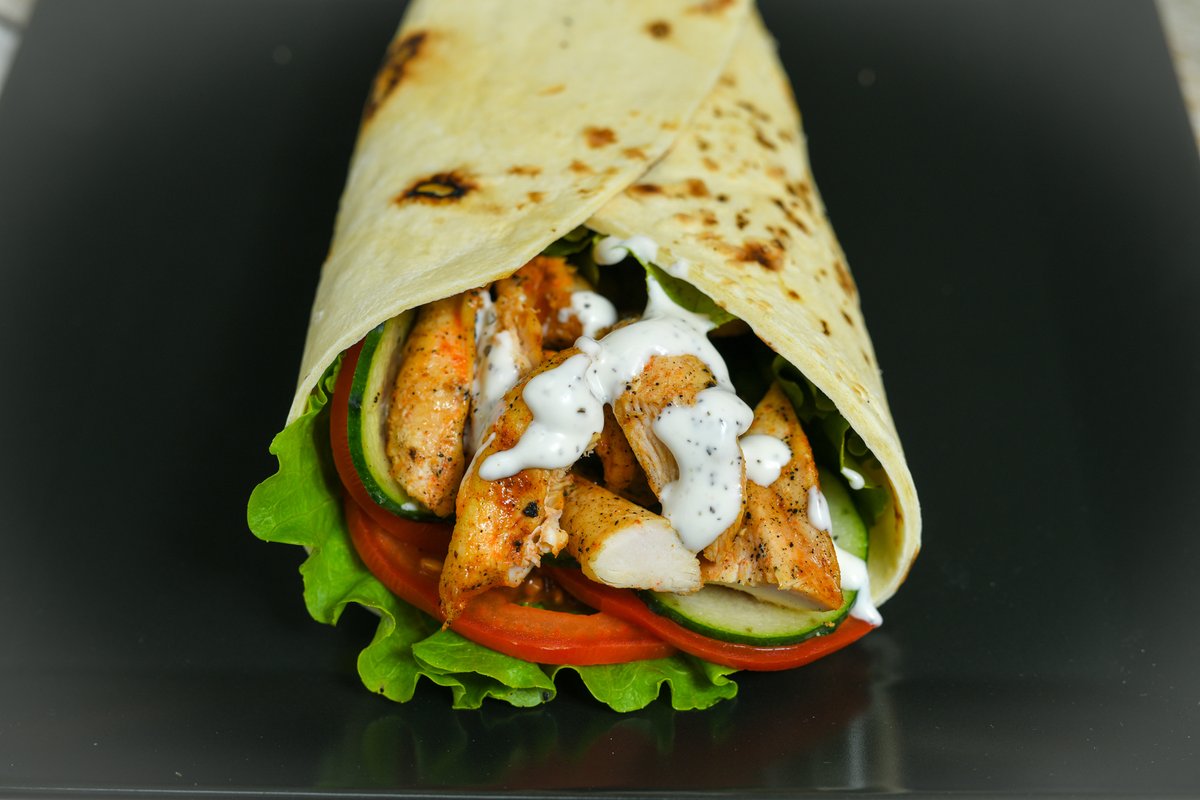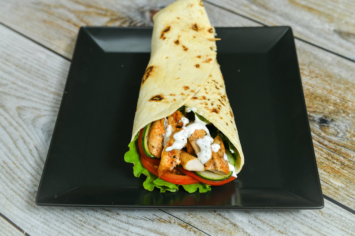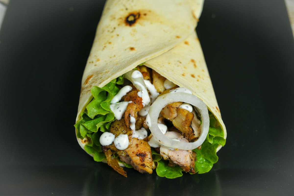 marinirani pileći batkovi 150g sa mešavinom giros začina, grčki namaz, kupus, paradajz, luk