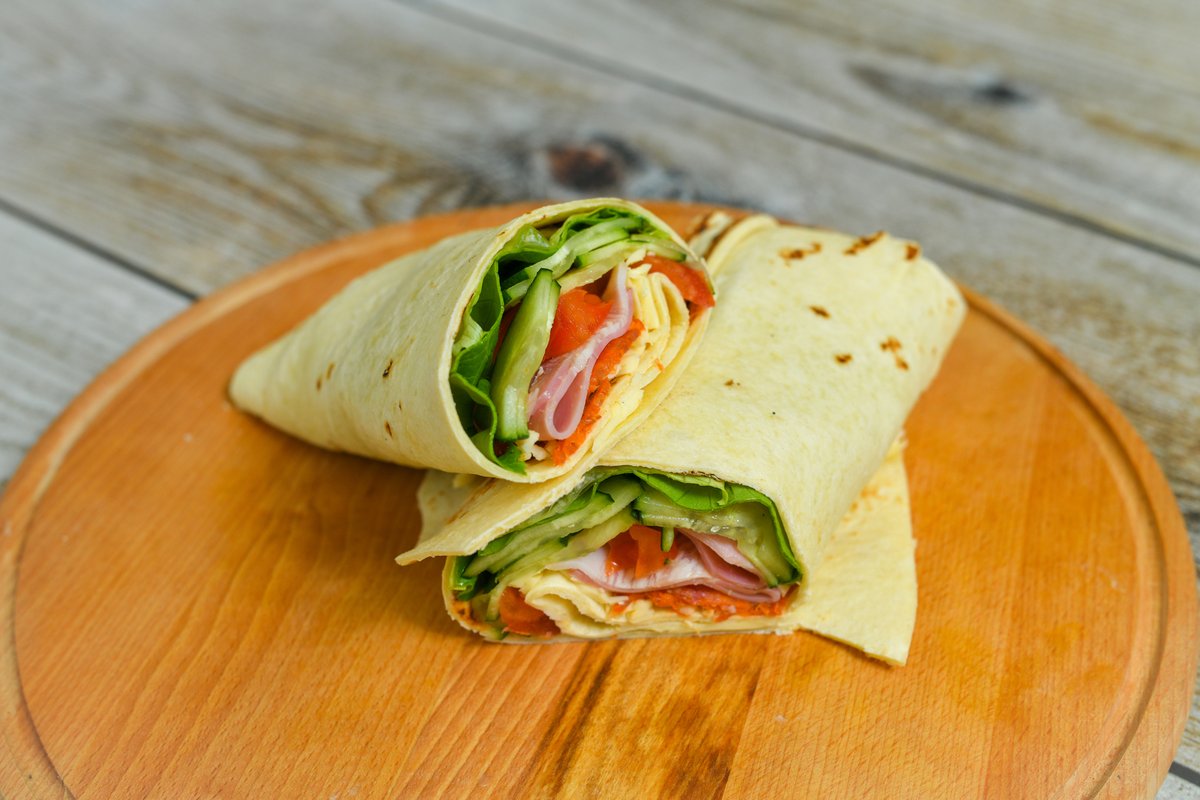 tortilja sendvič sa kulenom, dimljenim vratom i sirom, prilozi