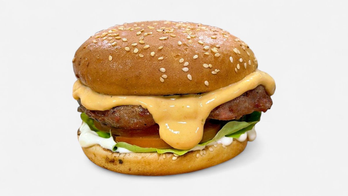 susam zemička, juneće meso 140g, burger sos, čedar sos, paradajz, zelena salata