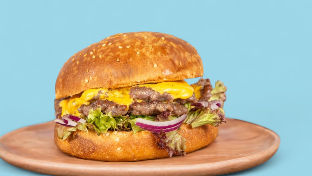 2x 70g 100% juneće meso, 2x cheddar sir, crveni sos, senf, crveni luk, kiseli krastavac