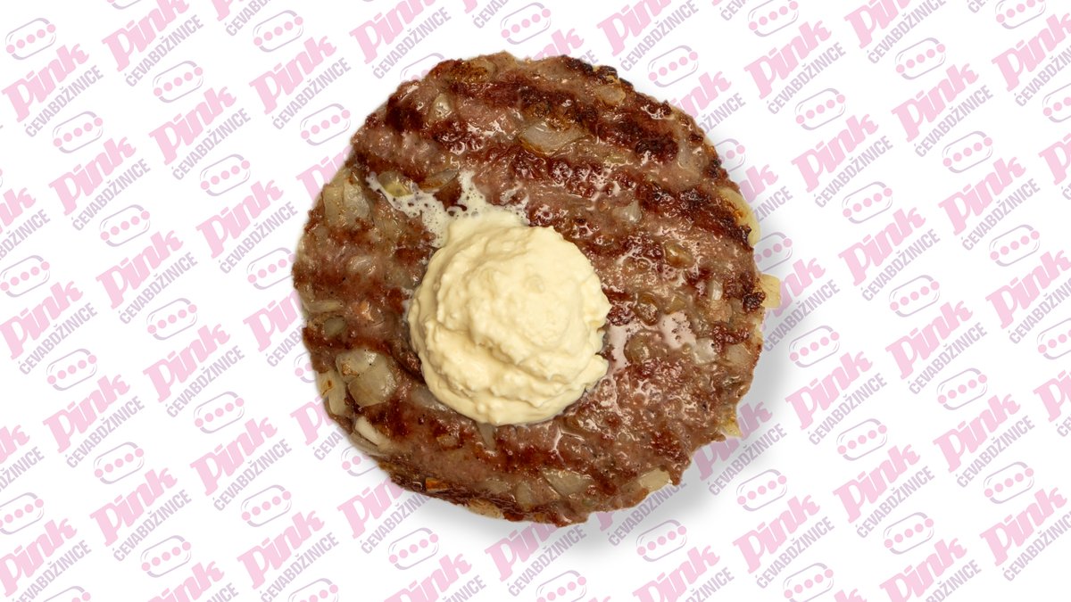 Pljeskavica od junećeg mesa mešana sa slaninom, kačkavaljem i ljutom paprikom.