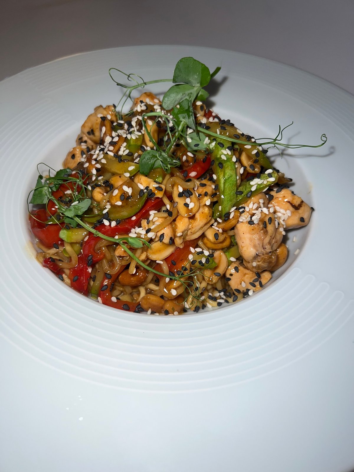 Pileći file, mix povrća crveni sos, pikant ananas nudle