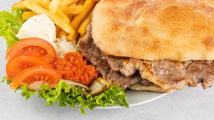 Juneće mleveno meso.Uz svaki obrok ide lepinja.