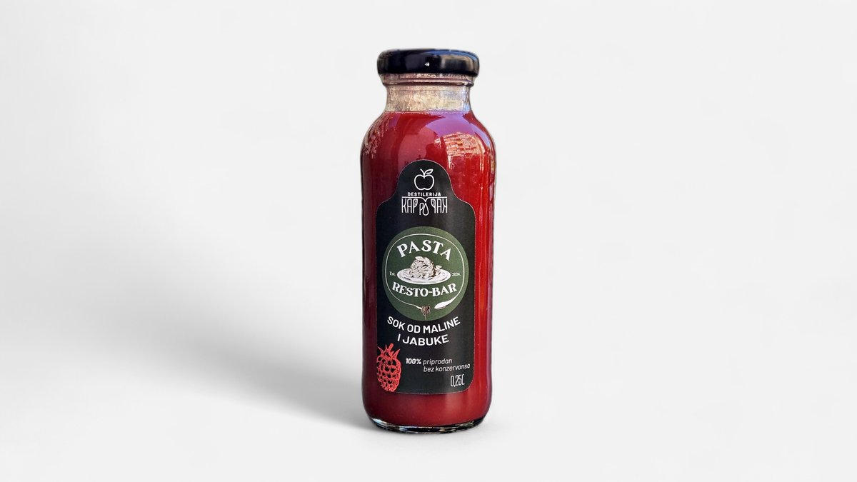 100% prirodni ceđeni sok 60% malina 40% jabuka BEZ DODATOG ŠEĆERA