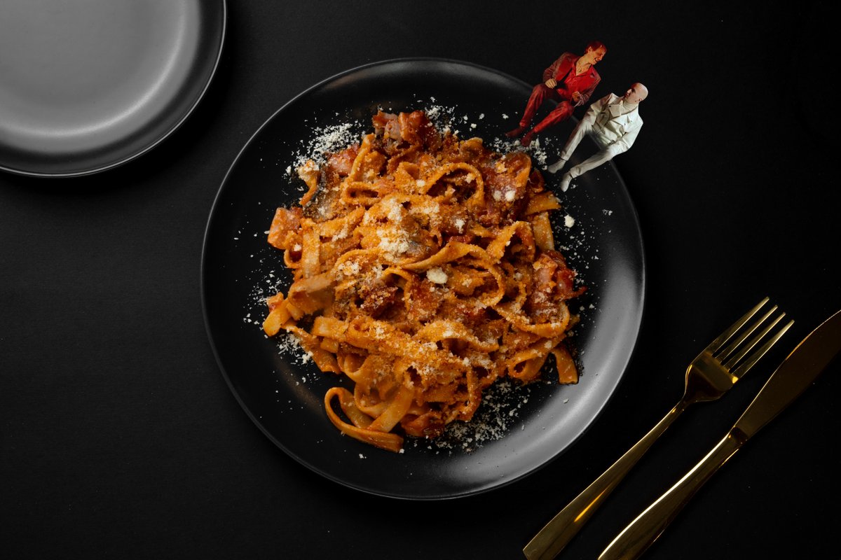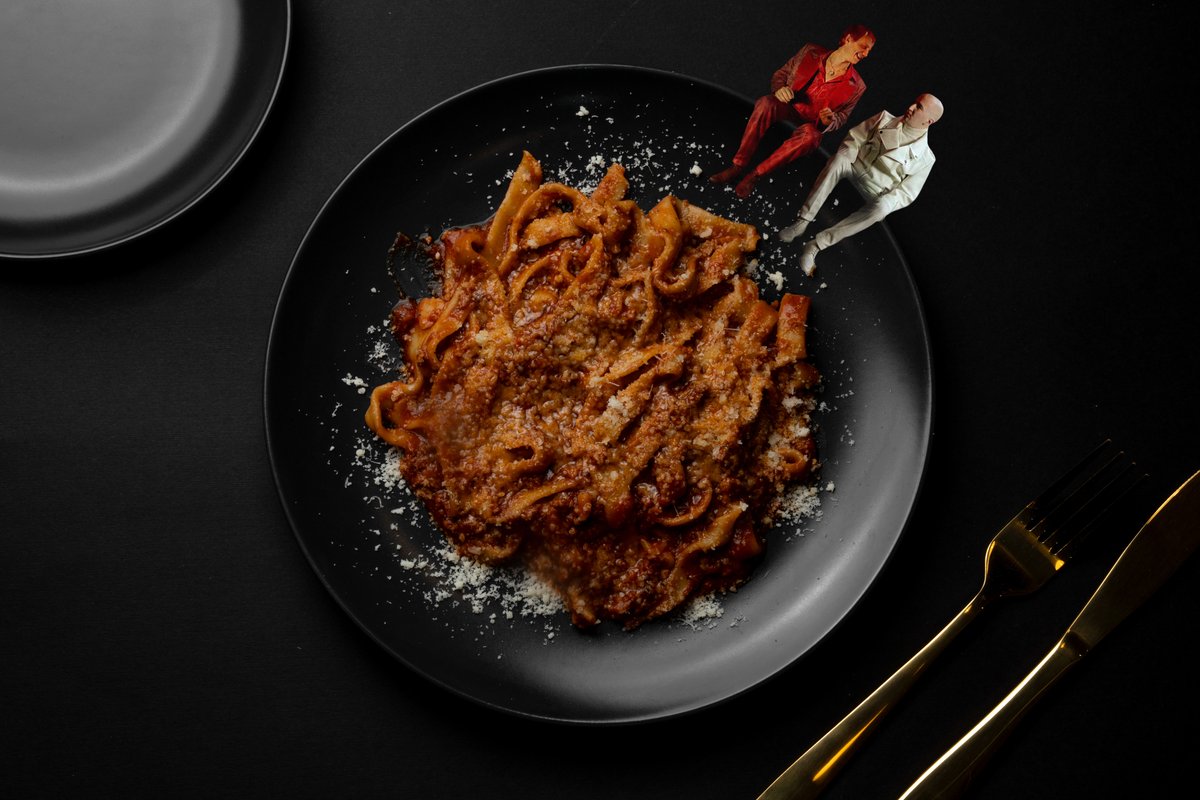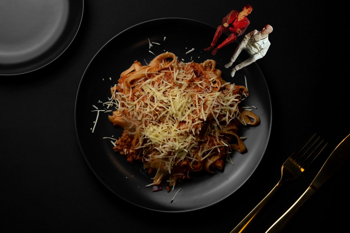 Mleveno meso, crni I beli luk, crveno vino, paradajz sos, bosiljak, biber, parmezan porcija 300~400g