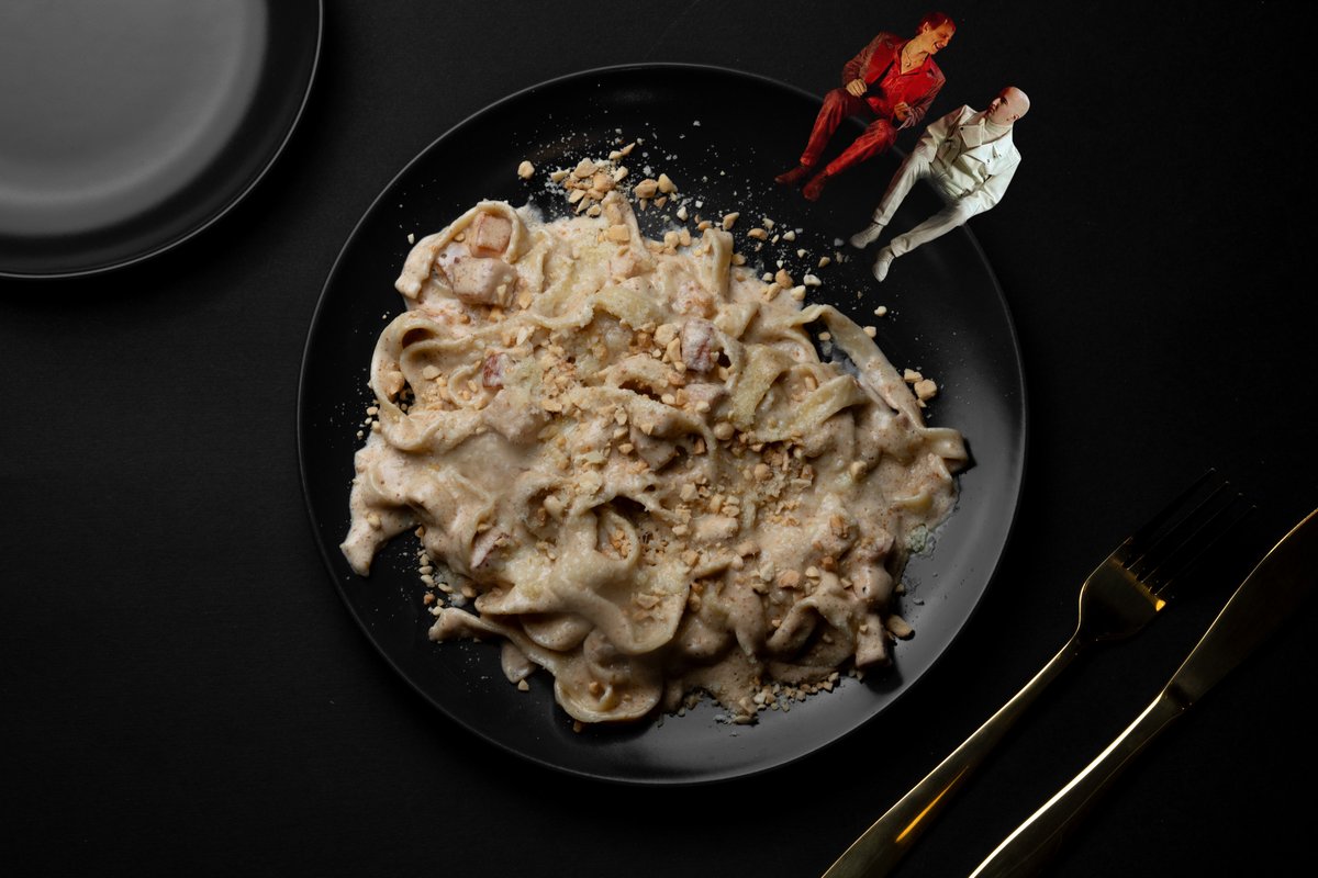 Dimljena piletina, kikiriki puter, pavlaka, parmezan