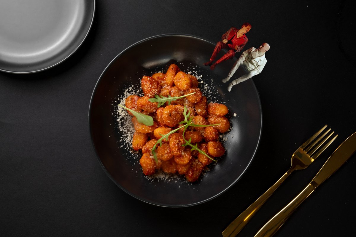 250gr njoki, tucana paprika, beli luk, domaci paradajz sos, persun, so, biber mogućnost dodatka pršute i rukole