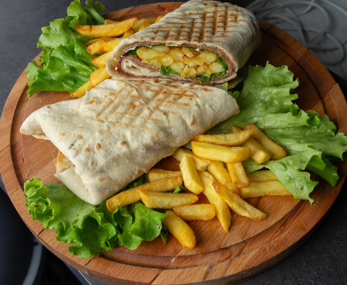 200gr rostiljskog mesa, domaca tortilja, pomfrit, dodaci