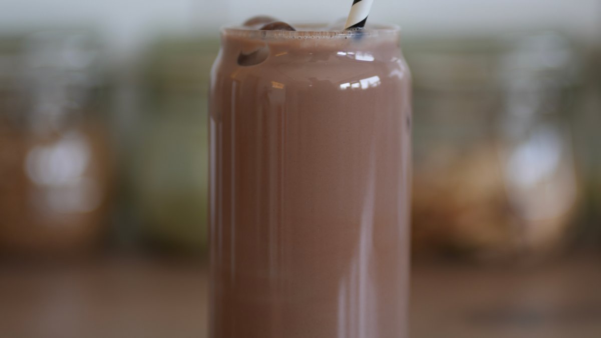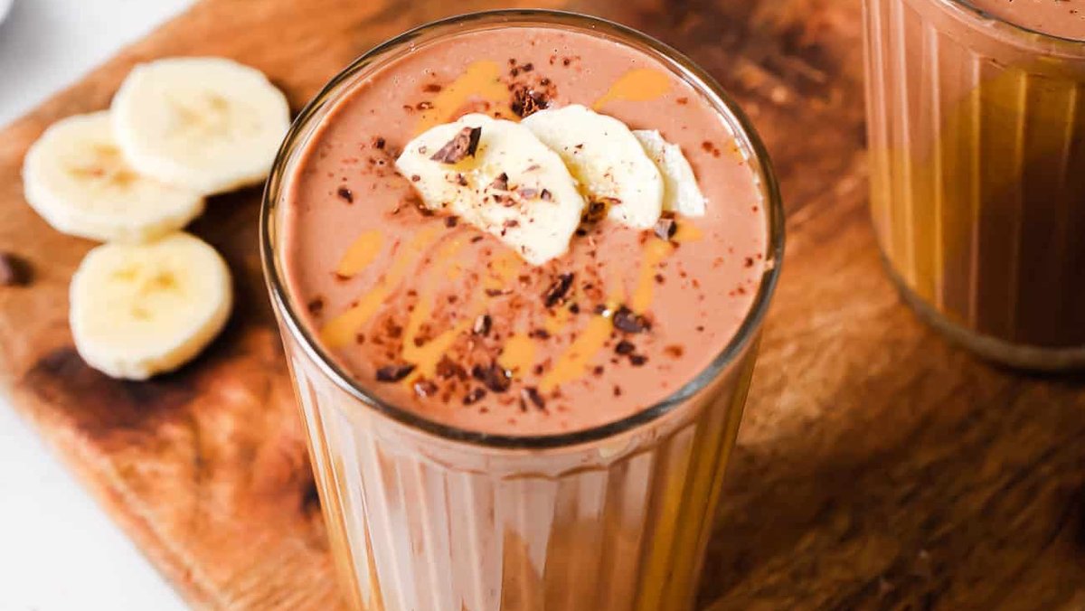 banana, biljno mleko, kakao, kikikiriki puter, kokosov protein, chia semenke, orašasto voće, agava sirup
