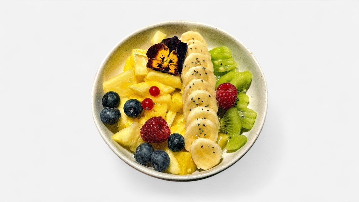 ananas, banana, kivi, malina, borovnica, javorov sirup