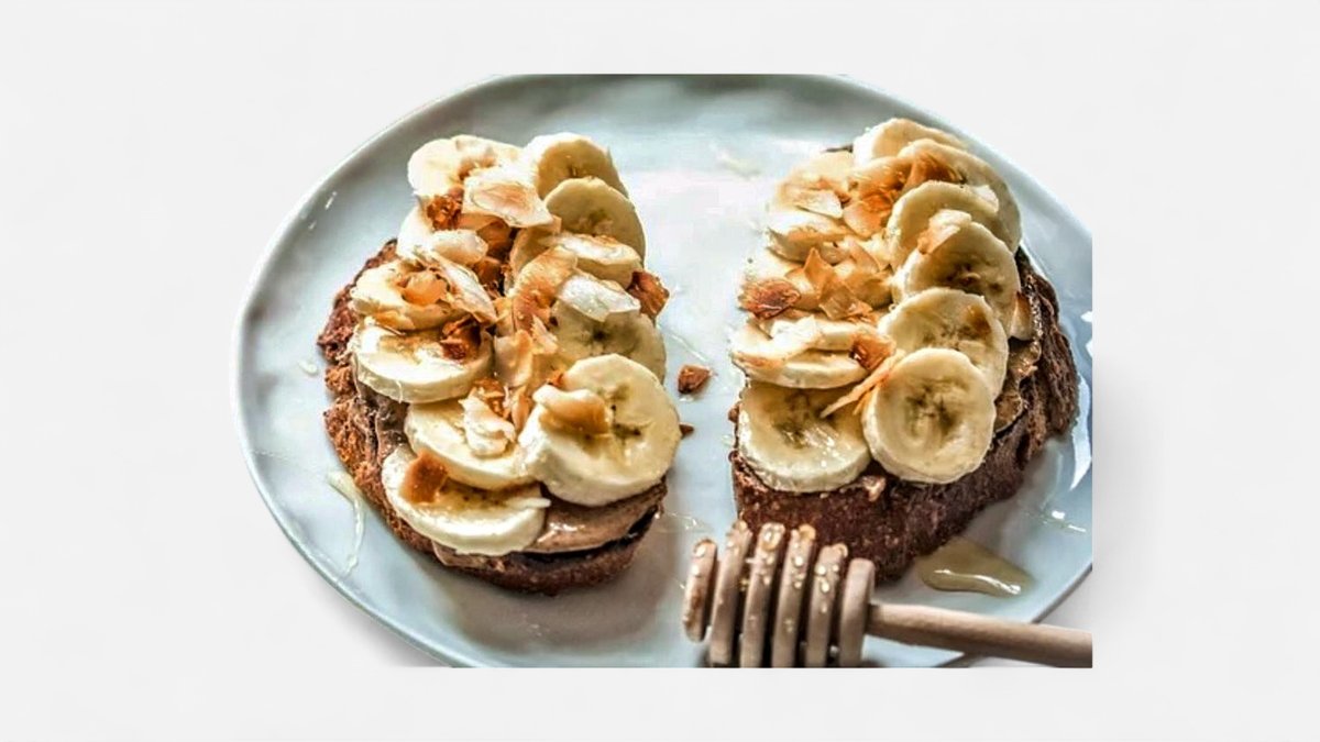 Kikiriki puter na tostiranom beskvasnom hlebu sa bananom i javorovim sirupom
