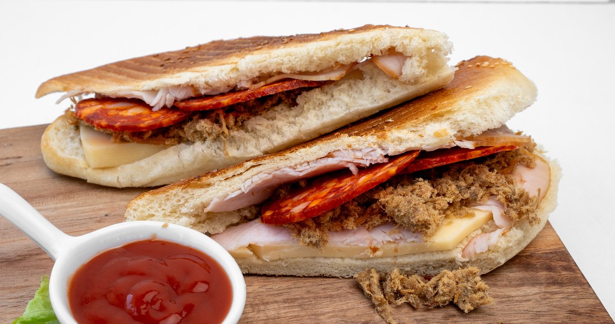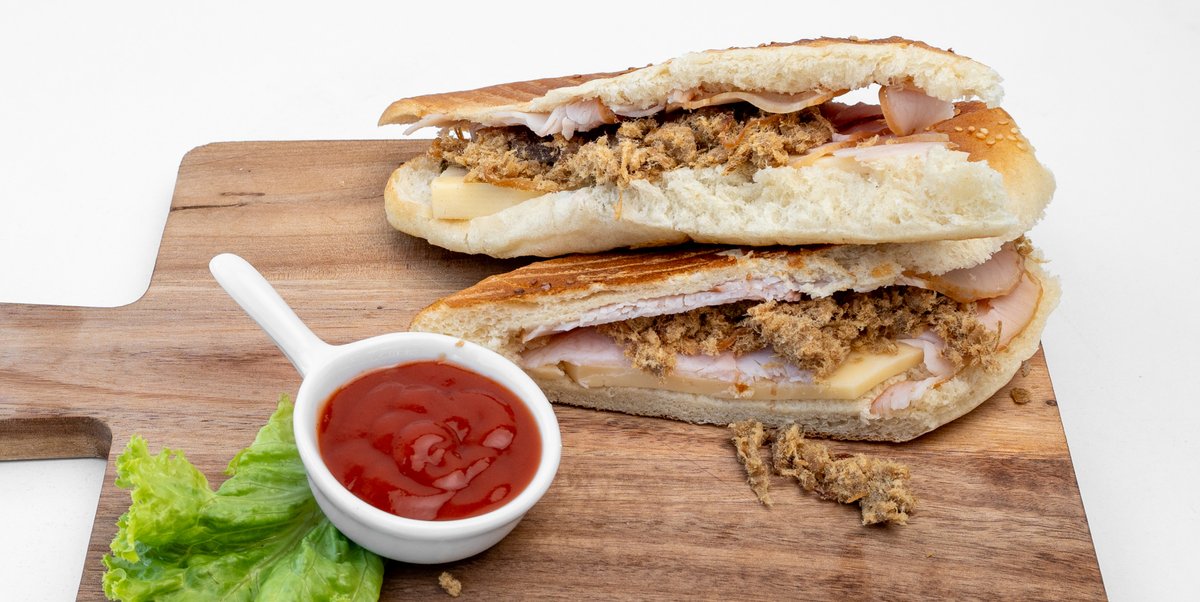 Kačkavalj, šunka, marinirani šampinjoni, origano, kečap