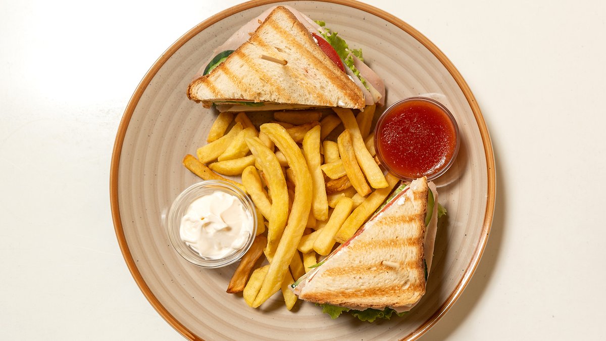 Pavlaka, šunka, kačkavalj, paradajz, zelena salata, krastavac, pomfrit