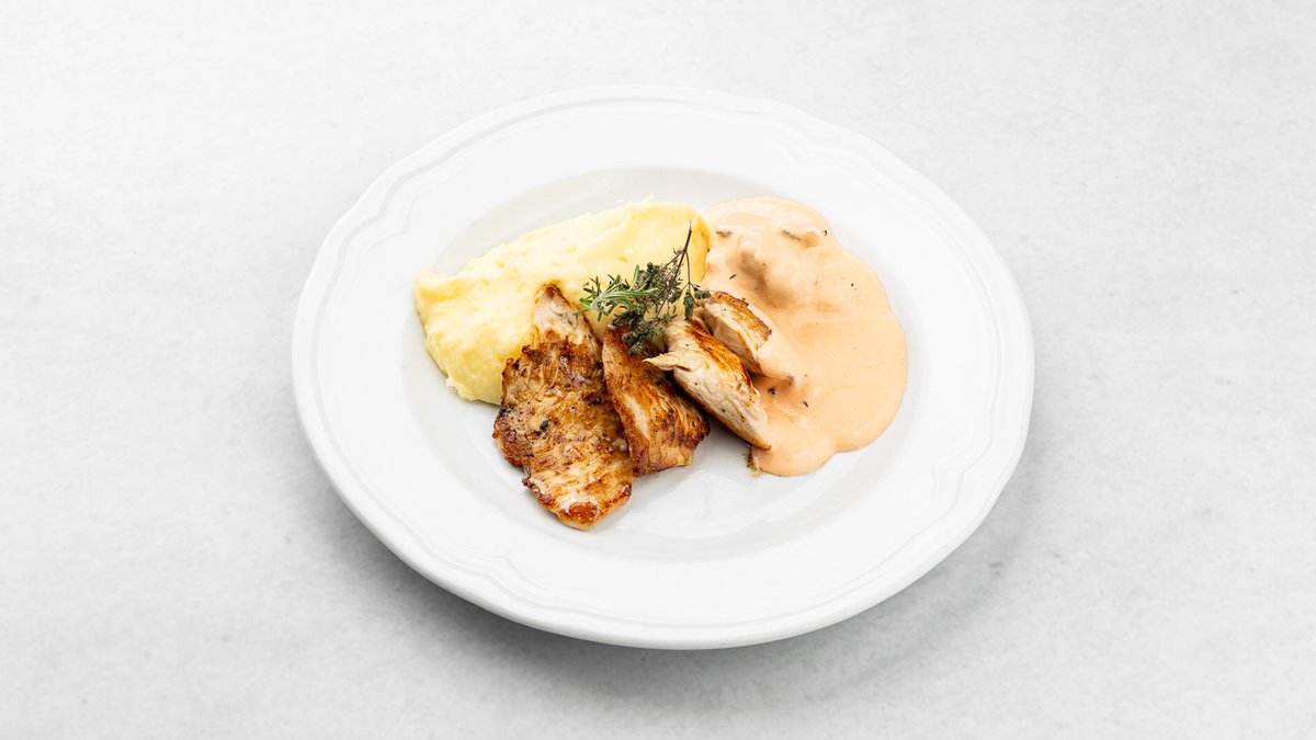 Piletina u sosu od pečuraka sa pire krompirom