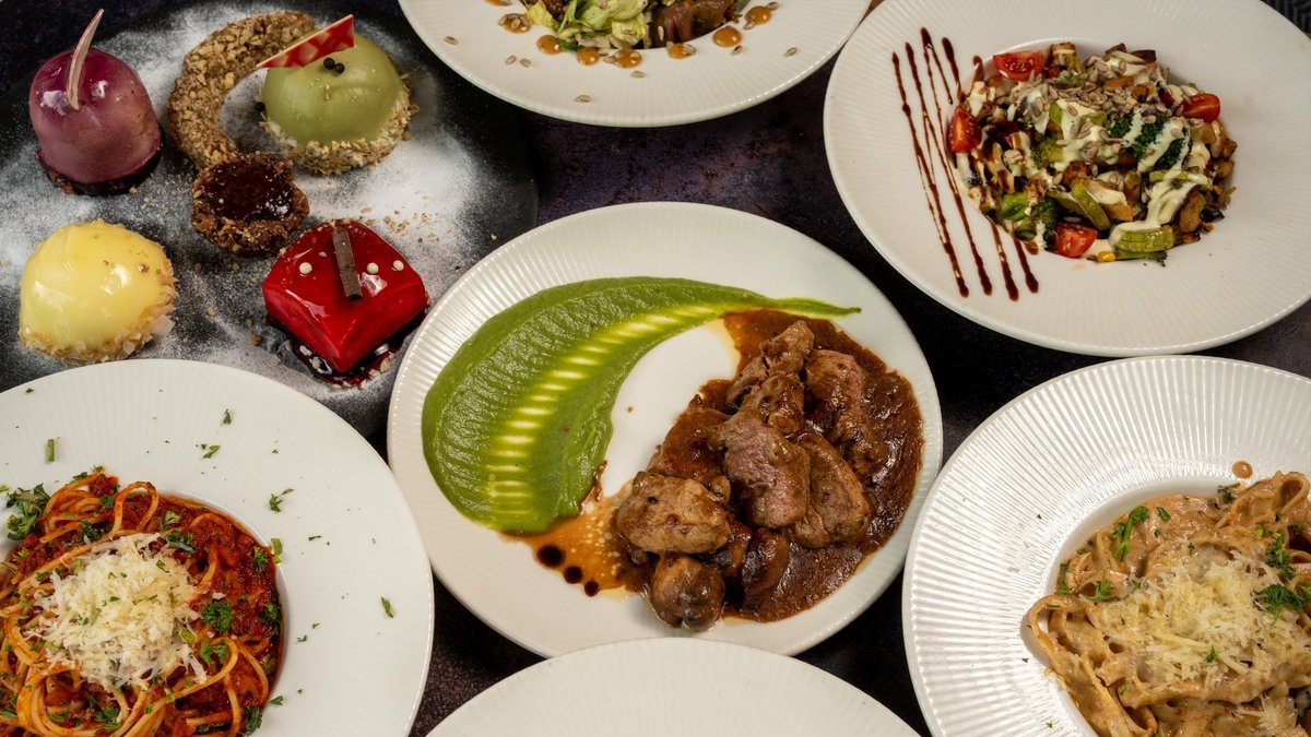 Pršuta, sprža, paprika, pečurke, jaja, mocarela, papričica, luk, hleb