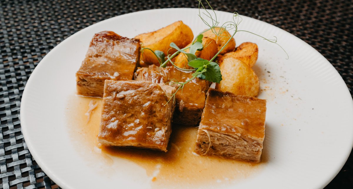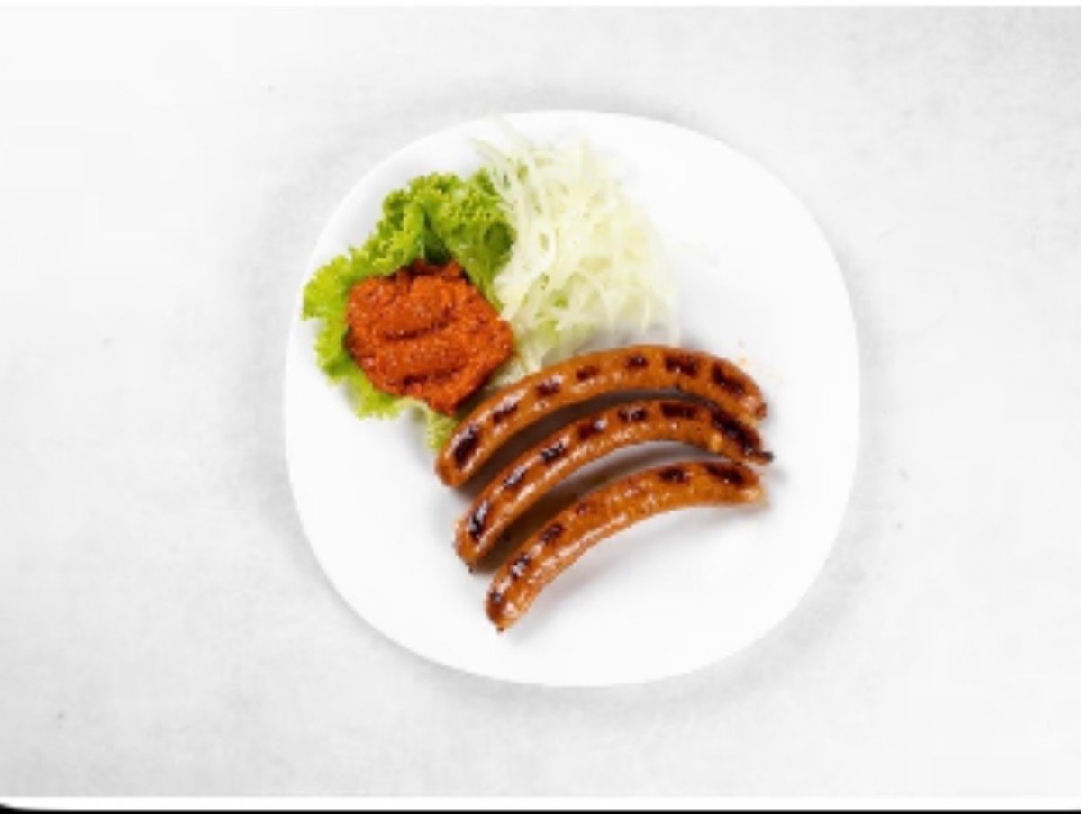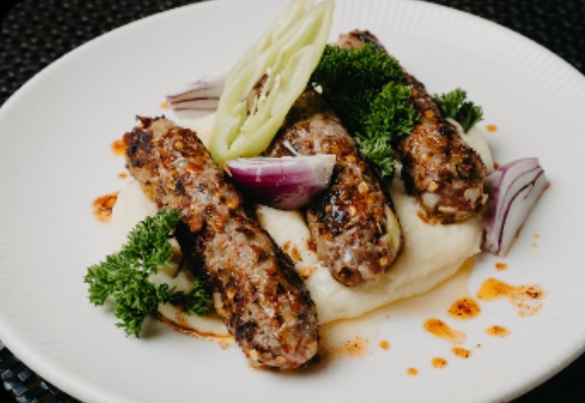 domaća kobasica od odabranog junećeg mesa, servirana na krompir pire