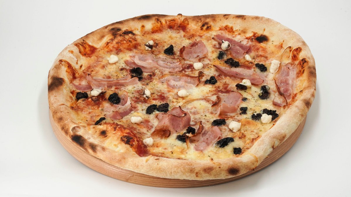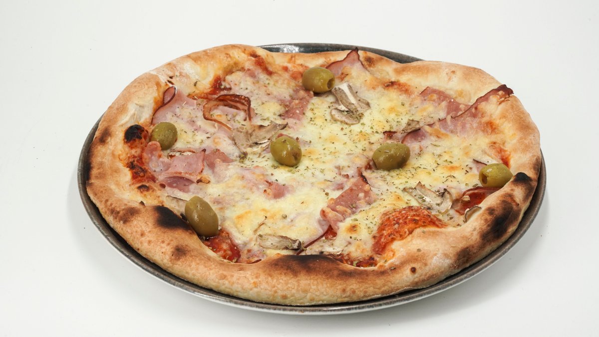 Pelat, šunka, šampinjoni, masline, kačkavalj