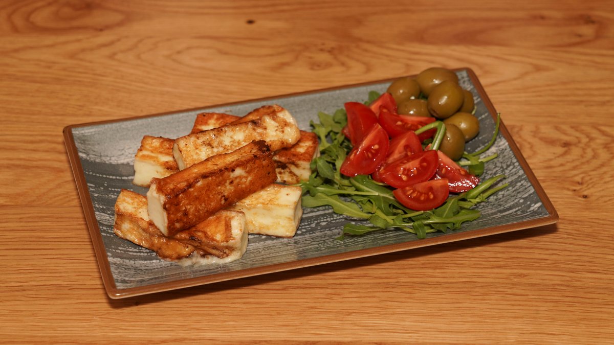 Mix zelene salate, čeri paradajz, suvo grožđe, orasi i grilovani brie sir sa med-senf dressingom